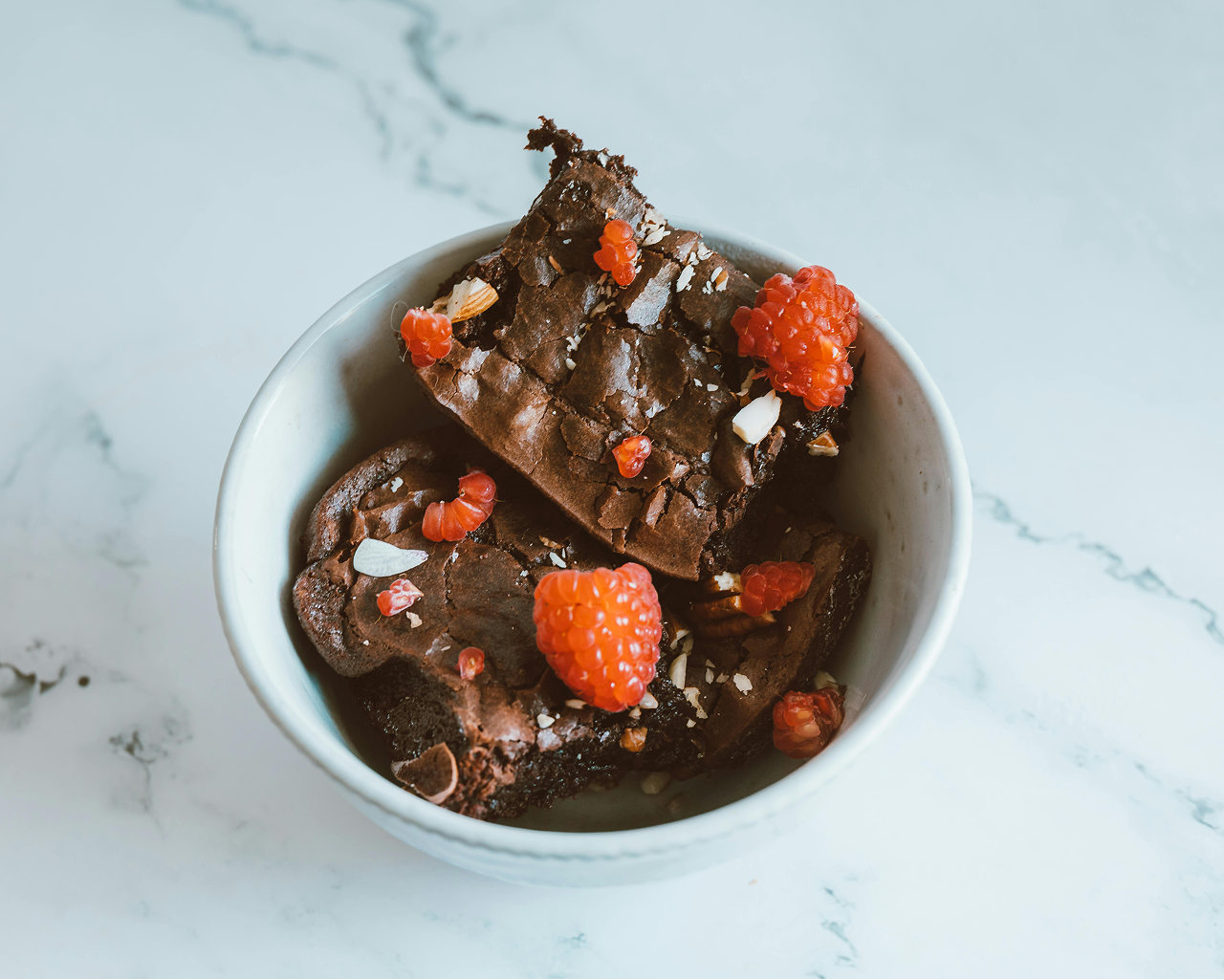 Diese Brownies sind der perfekte Mix aus schokoladigem Genuss und natürlicher Süße. Reife Bananen, feiner Blütenhonig und der Hauch von Zimt in unserem Rohkakao machen sie unwiderstehlich – ganz ohne industriellen Zucker. Abgerundet mit fruchtigen Beeren und cremigem Haselnussmus wird daraus ein Dessert, das sowohl himmlisch schmeckt als auch ein gutes Gefühl hinterlässt.