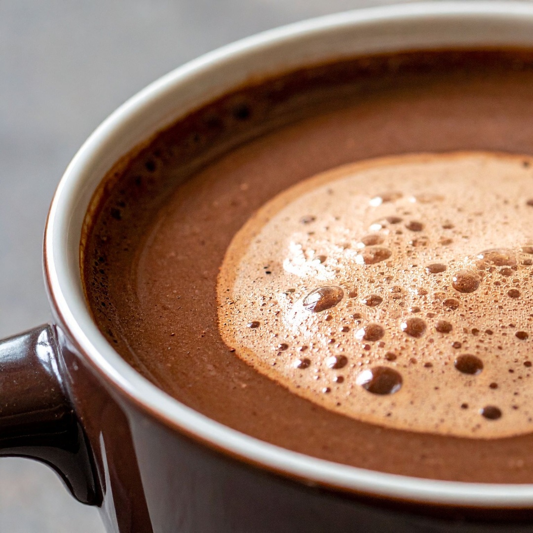 2. 2–3 TL Rohkakao einrühren und mit Rührstab oder Schneebesen gut verquirlen.